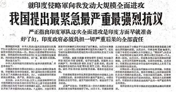 但是,尼赫鲁却公然抛弃中印友好的旗帜,把中国政府谋求和平解决边界问题的努力和克制忍让视为软弱可欺,进而得寸进尺,对中国步步进逼。从1961年开始,尤其是从 1962年4月起,印军在中印边界西段中国境内先后设立了43个军事据点。