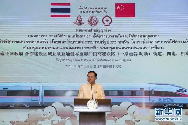 10月28日下午,中泰铁路合作项目一期(曼谷—呵叻段)线上工程2.3合同签约仪式在泰国总理府举行。泰国总理巴育当天表示,曼谷至呵叻段建成后将成为泰国重要的经济发展动力,铁路是重要的战略资产,可以提高泰国竞争力并发展铁路沿线城市。中国外交部发言人汪文斌29日表示,中泰铁路合作项目是两国高质量共建“一带一路”旗舰项目,将有力带动泰国基础设施建设和经济社会发展。