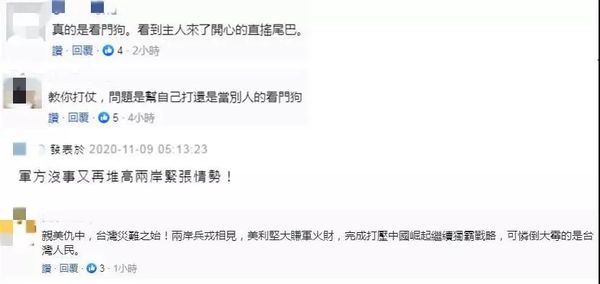 台军的“欣喜若狂”也引发台网友反感。有人说,“真的是看门狗,看到主人来了开心地摇尾巴”。