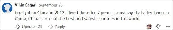 对于美版知乎Quora上的这一话题,不少外国网友给出了一致回答:“中国!”至于理由,从华姐“点赞”的几条外国网友真实经历可窥一二。