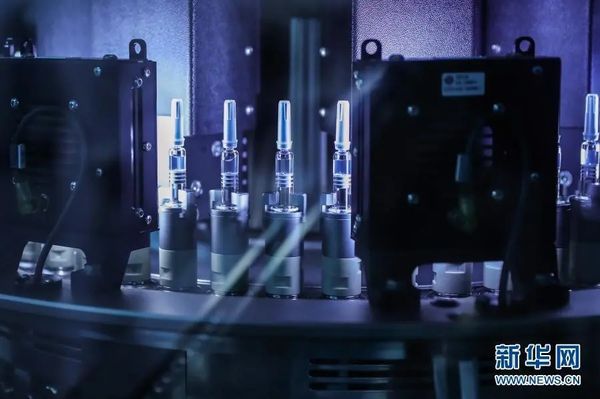 2020年12月25日,在国药集团中国生物北京生物制品研究所的新冠病毒灭活疫苗分包装车间内,疫苗产品在灯检机内进行灯检。 新华社记者 张玉薇 摄