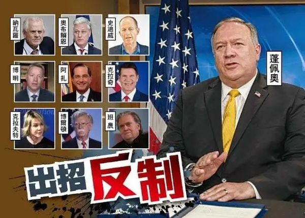 中方决定对在涉华问题上严重侵犯中国主权、负有主要责任的28名人员实施制裁,包括特朗普政府中的蓬佩奥、纳瓦罗、奥布莱恩、史达伟、波廷杰、阿扎、克拉奇、克拉夫特以及博尔顿、班农等。