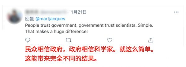 “民众相信政府,政府相信科学家。就这么简单。这能带来完全不同的结果。”