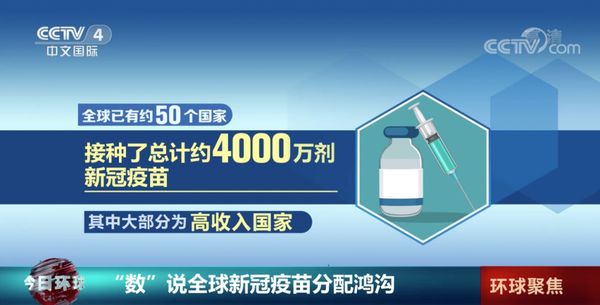 世卫组织近日公布的数据显示,全球已有约50个国家接种了总计约4000万剂新冠疫苗,其中大部分为高收入国家。
