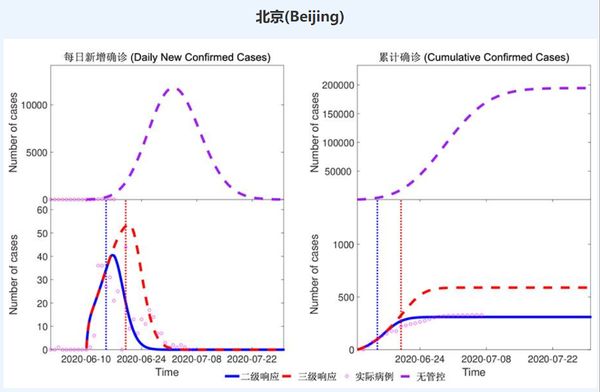 ▲2020年6月该系统对于北京疫情的预测曲线图