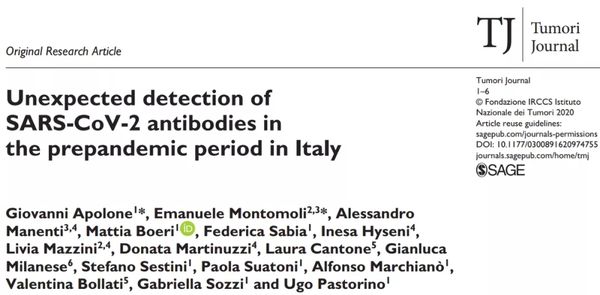 米兰国家肿瘤研究所等机构论文《意大利疫情大流行前意外检测到的新冠病毒抗体》