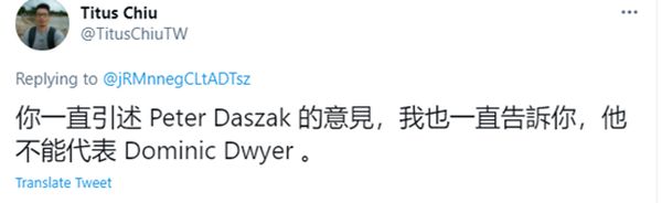 然而,由于当时被歪曲的Dominic Dwyer并没有自己出面澄清此事,所以也有一些反华分子和挑事者就“心存侥幸”地宣称Peter Daszak等其他与Dominic Dwyer共同在中国工作了数周、天天在一起开会的专家,代表不了这位澳籍专家。