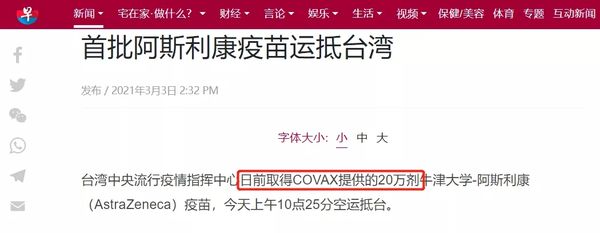 据台媒3日报道,首批新冠疫苗已于当天早上运抵台湾。不过,在多家有关该消息的报道里,有关疫苗的来源和剂量总数却出现了不同的说法。