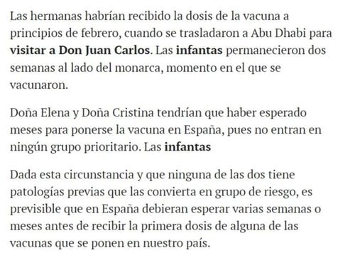 关于Elena和Cristina接种疫苗的消息是否属实,王室方面既没有承认,也没有否认。