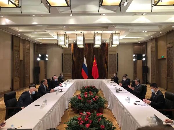 2021年3月23日,国务委员兼外长王毅在广西桂林同俄罗斯外长拉夫罗夫举行会谈。