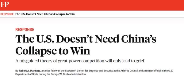 国际秩序不可避免要反映全球深层次的力量平衡。美国智库大西洋理事会高级研究员罗伯特·曼宁在《外交政策》网站刊文指出,现代社会的稳定秩序从来都基于实力平衡,中美双方必须接受某种形式的共存。