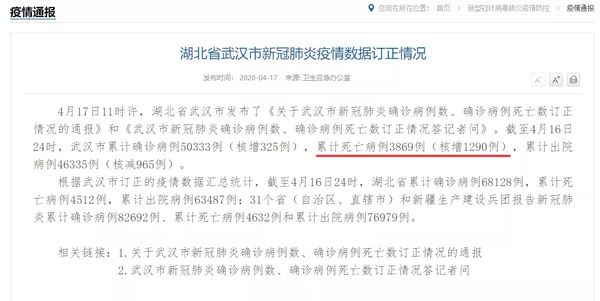 中国卫健委的公开资料显示,去年4月17日武汉修订了新冠肺炎死亡病例数据,核增了1290例,从而令当地累计死亡病例增加到了3869例,并令当时中国31个省(自治区、直辖市)和新疆生产建设兵团的死亡病例增加到了4632例。