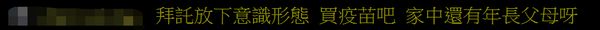 也有网友在PTT论坛发表文章“集气!想打BNT疫苗的朋友推爆吧!”随即涌入大批网友支持并留言:“救命的东西别开玩笑,时间很重要”,“拜托大陆爸爸送我们”,“拜托放下意识形态,买疫苗吧,家中还有年长父母呀”。↓