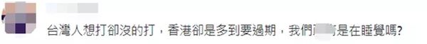 还有网友忍不住开骂民进党当局:无能到极点,香港疫苗多到打不完,台湾连边都沾不上;台湾人想打却没得打,香港却是多到要过期,我们“政府”是在睡觉吗?↓