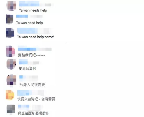 对于香港要捐复必泰疫苗的消息,不少岛内网友在台媒相关报道消息下留言:“Taiwan need help”。还有网友说:“卖给我们吧”,“捐给台湾吧”,“台湾人民很需要”,“拜托给台湾,台湾很惨”。↓