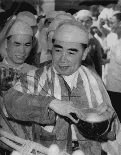 △1960年4月,访缅期间身穿缅服参加泼水节的周总理。