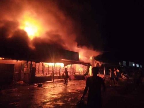 缅甸掸邦瑙丘镇综合市场发生火灾