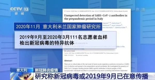 论文第一作者乔瓦尼·阿波洛内说,2019年10月,第一周采集的4名志愿者血样中存在这种抗体,这表明他们很可能在2019年9月已感染新冠病毒。这也可以解释为何2020年2月疫情在意大利北部突然暴发。