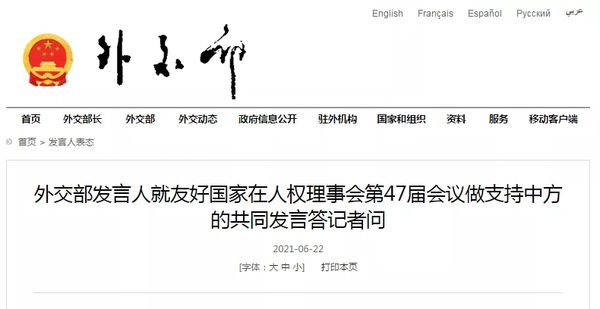 6月22日,外交部发言人就友好国家在人权理事会第47届会议做支持中方的共同发言答记者问