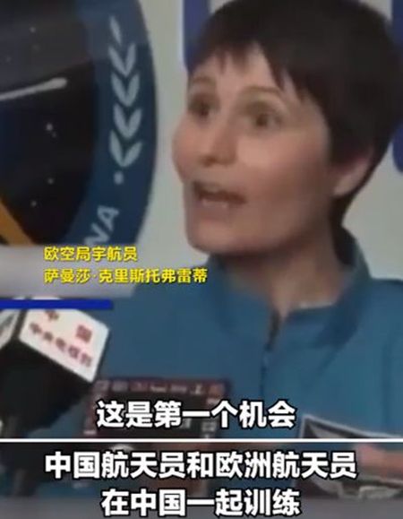 对着镜头,萨曼莎 · 克里斯托弗雷蒂用中文说道:“这是第一个机会,中国航天员航天员在中国一起训练,我们的团队合作很顺利,很好。”