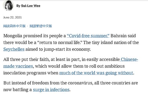 (截图来自《纽约时报》记者黄瑞黎撰写的抹黑中国疫苗的文章)