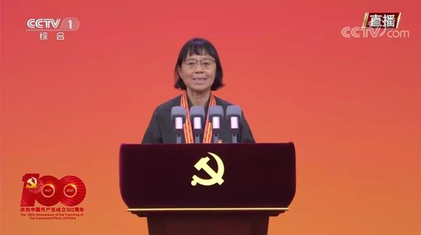 经中共中央批准,“七一勋章”颁授仪式于6月29日上午10时在人民大会堂隆重举行。会上,“七一勋章”获得者张桂梅发言。