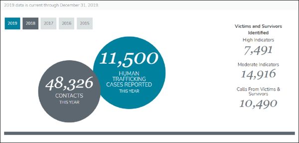 据美国公益组织“北极星”(Polaris)统计,2015年全美报告了5714起人口贩卖案件,该数字逐年增加,到2019年时为11500起,已经翻了一倍多。