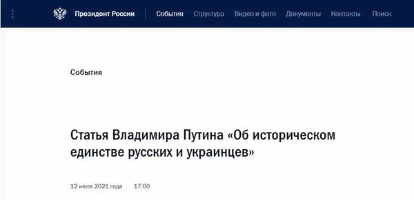 在克里姆林宫12日发布的文章中,普京表示,近年来俄乌之间出现的“隔阂”是个“悲剧”,这首先是双方在不同历史时期所犯错误的结果,也是一直寻求破坏俄乌团结的“那些势力”开展的有针对性的工作的结果。