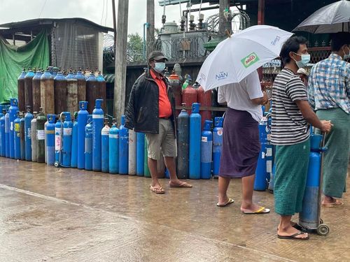 随着缅甸新冠疫情迅速恶化,加之各医院均已人满为患,不少确诊患者只能居家隔离治疗,市场上氧气瓶、制氧机、呼吸机以及各种药物均出现抢购现象。7月15日,仰光一家大型制氧工厂由于大批员工确诊而暂时关闭,这也使市面上的氧气供应更加紧张。(总台记者 王悦舟)