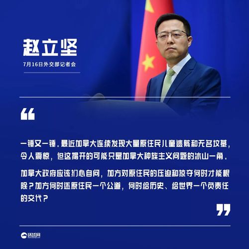 “加拿大政府应该扪心自问,加方对原住民的压迫和掠夺何时才能根除?加方何时还原住民一个公道,何时给历史、给世界一个负责任的交代?”赵立坚反问称。