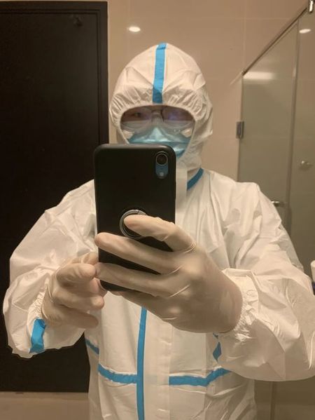 缅甸疫情形势严峻,这样的防护装备是陈戍元的日常必需。