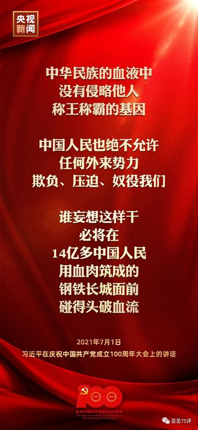 中国领导人在天安门广场庄严对外宣布:中国人民绝不允许任何外来势力欺负、压迫、奴役我们。谁妄想这样干,必将碰得头破血流。
