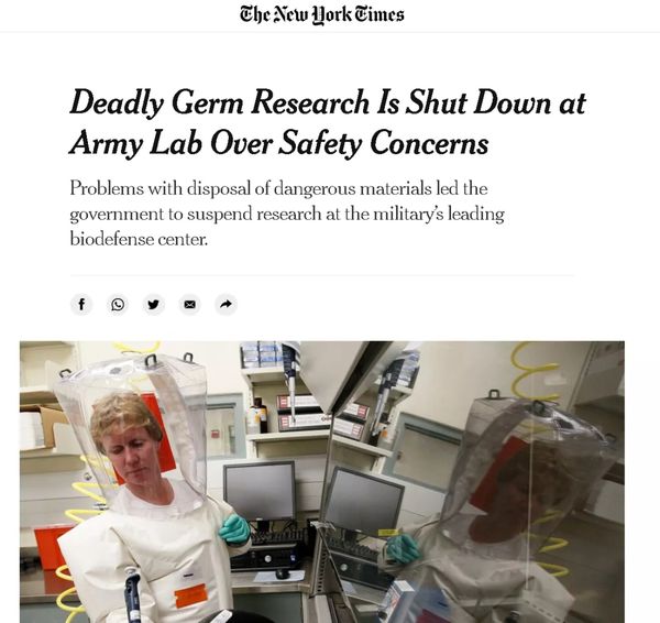 1、在2019年新冠疫情出现前夕,包括《纽约时报》在内的美国主流媒体,都曾经报道德特里克堡生物实验室因为实验室安全问题而被美国疾控中心暂时关闭的事情,并提及该实验室进行着大量危险病毒的研究;