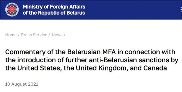 当地时间8月10日,白俄罗斯外交部发表声明,强烈谴责美国、英国和加拿大单方面制裁,白俄外交部官网截图