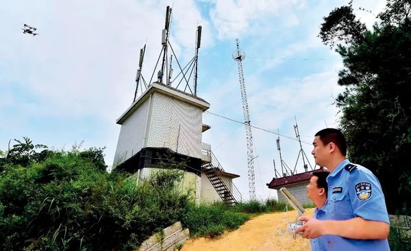 安溪县长坑乡,民警使用无人机对位于深山的电信基站周边进行巡查。图/新华