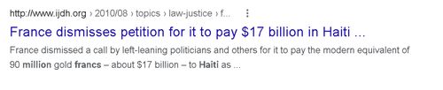后来,在人类文明进入21世纪以来,曾有一些媒体要求法国将这笔不平等的赔偿,按照现在的货币汇率退还给海地,但法国政府一直在拒绝这么做。