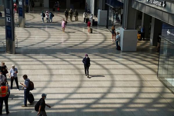 8月11日,人们走在美国纽约宾夕法尼亚车站的新乘车大厅内。新华社记者 王迎 摄