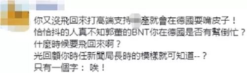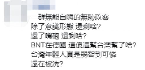 此外,还有不少网友认为谢志伟“在德国耍嘴皮子”,“领钱自嗨,只剩愚民?”“刚舔完郭董(郭台铭)的BNT又回头舔高端真是够了~”