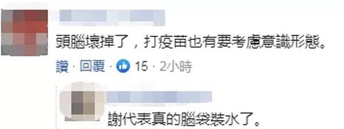 对谢志伟在帖文中硬扯大陆,有网友称“疫苗有自己的医学认证体系,和政治无关”,批评谢志伟“头脑坏掉了,打疫苗也有要考虑意识形态”。