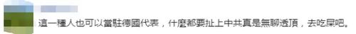 也有网友质疑,“这一种人也可以当驻德国代表,什么都要扯上中共真是无聊透顶。“什么屁观念,本来就跟大陆没关系、这也要扯,有回来打了吗?”