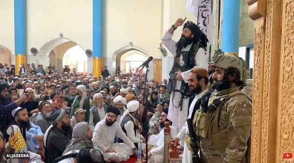 塔利班领导人在占领喀布尔后向民众发表演说 图片来源:视频截图
