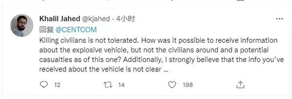 颇为讽刺的是,就在几个小时前,五角大楼还称,他们“评估了平民伤亡的可能性,尚未发现相关迹象”。