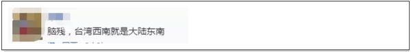还有人直言,“脑残,台湾西南就是大陆东南。”