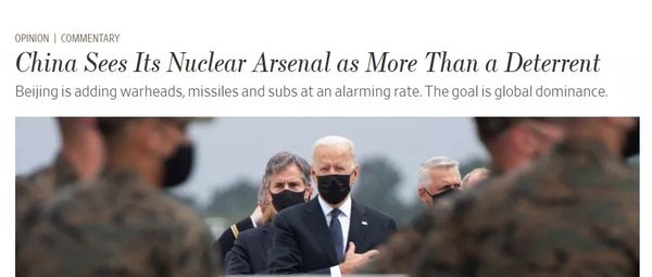 9月7日,曾在里根政府时期任副国务卿、现任哈德逊研究所高级研究员的小威廉•施耐德投书《华尔街日报》,宣称北京正在以惊人的速度增加核弹头。