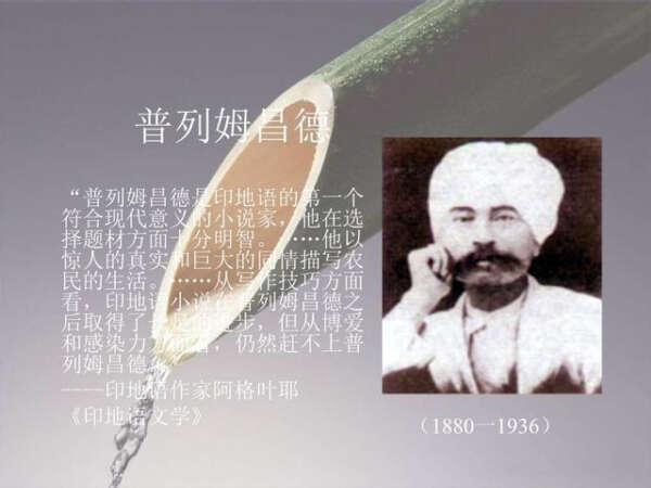 普列姆昌德是印度进步文学运动的代表作家,他在印度有"小说之王"的美誉。代表作:《戈丹》,《舞台》、《服务院》印度现代印地语和乌尔都语杰出小说家。他的小说以批判现实主义的精神,剖析了腐败的印度社会,揭露了种种社会弊端,刻画了各种出身、职业、阶层、地位的男女老少众多的人物,从而构成了20世纪早期的印度社会的广阔图画。他的文学创作和他倡导的富有进步和民主精神的文学理论影响了整整一代作家。1908年出版小说集《祖国的痛楚》,遭英国殖民当局查禁。1918年出版了他第一部成功的长篇小说《服务院》。在整 个30多年的创作生涯中,他创作了15部中、长篇小说(包括两部未完稿,300 篇左右的短篇小说。长篇小说中,主要还有《仁爱院》、《舞台》、《妮摩拉》和《戈丹》,《戈丹》是他的代表作。短篇小说中,有不少优秀的品,像《沙伦塔夫人》、《象棋手》、《开斋节的会礼地》、《可番布》都脍炙人口。