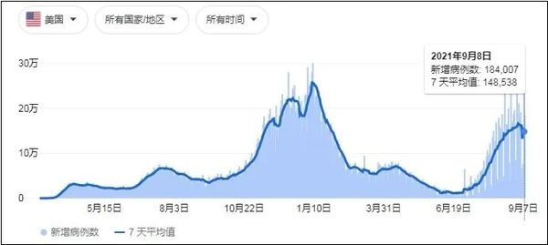 两个多月前的“独立日”,拜登还自信地宣布美国从新冠疫情中“归来”短短两个月之后,美国的新冠疫情形势发生了根本性的逆转——过去28天内,美国有超过420万人确诊。截至9月7日,美国今年的总确诊数(约20146000例),已超过去年全年的确诊数。