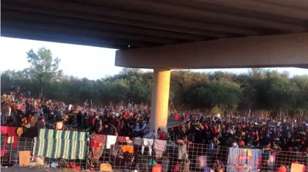 上万名非法移民聚集在美得州边境大桥附近,场面惊人!