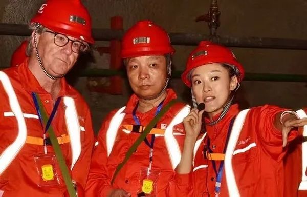 ▎2018年8月,时任巴里克执行董事长约翰·桑顿(左)参观了中国产量最大的金矿的地下作业。图源:Barrick Gold Corporation