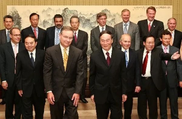 ▎2008年8月7日,时任国务院副总理王岐山在中南海紫光阁会见出席清华大学经济管理学院顾问委员会,桑顿位于第二排右四。图源:中国政府网