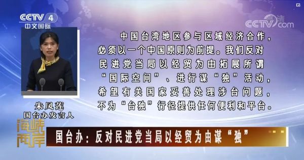 “台湾的加入之窗已慢慢关闭”。针对民进党当局继大陆之后宣布申请加入《全面与进步跨太平洋伙伴关系协定》(CPTPP),英国媒体作出了这样的分析。台湾中时电子报评论称,CPTPP成员全都与大陆有邦交,民进党当局否认“九二共识”,把两岸关系带入冷冻状态,台湾想要加入CPTPP不啻于缘木求鱼。